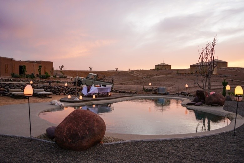 You can experience the Moroccan desert without going to the sahara—the Agafay Desert is a desert oasis located just outside of Marrakech.
